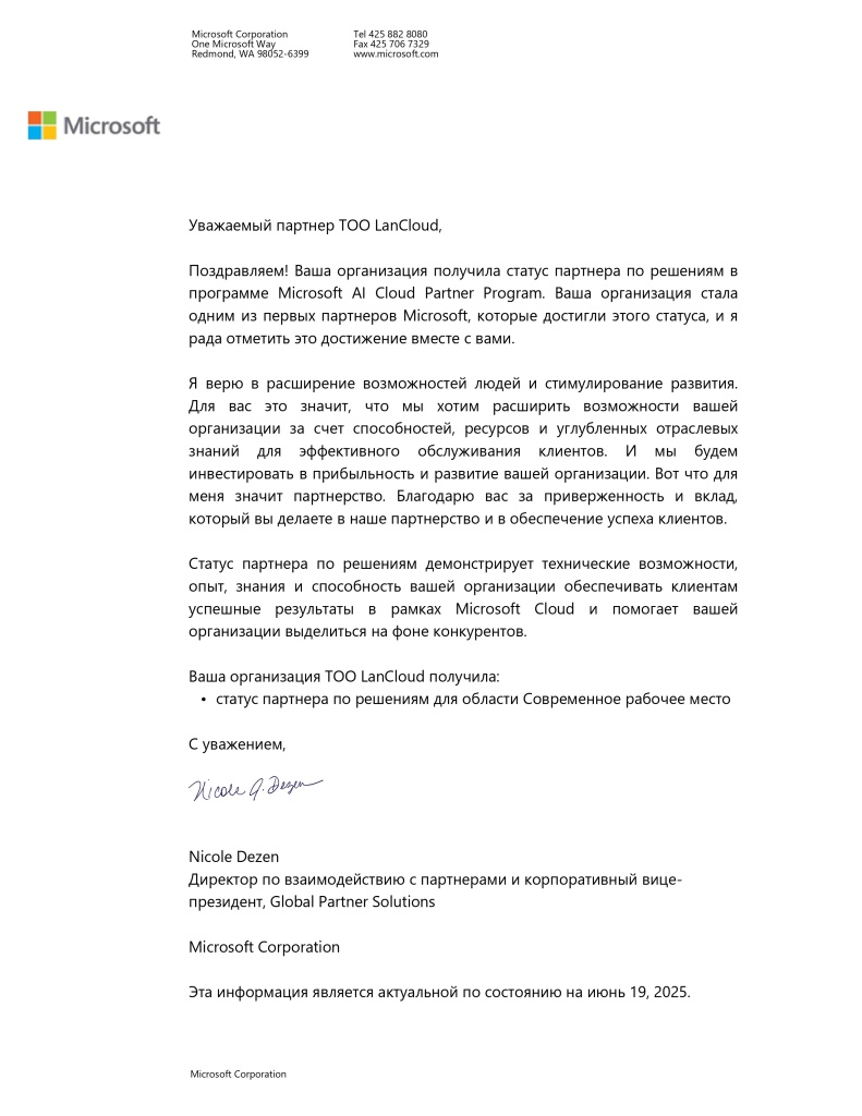 Partnering with Microsoft allows LanCloud to expand customer capabilities with modern cloud and AI solutions, providing access to the latest technologies and resources, including expert technical support and consulting.